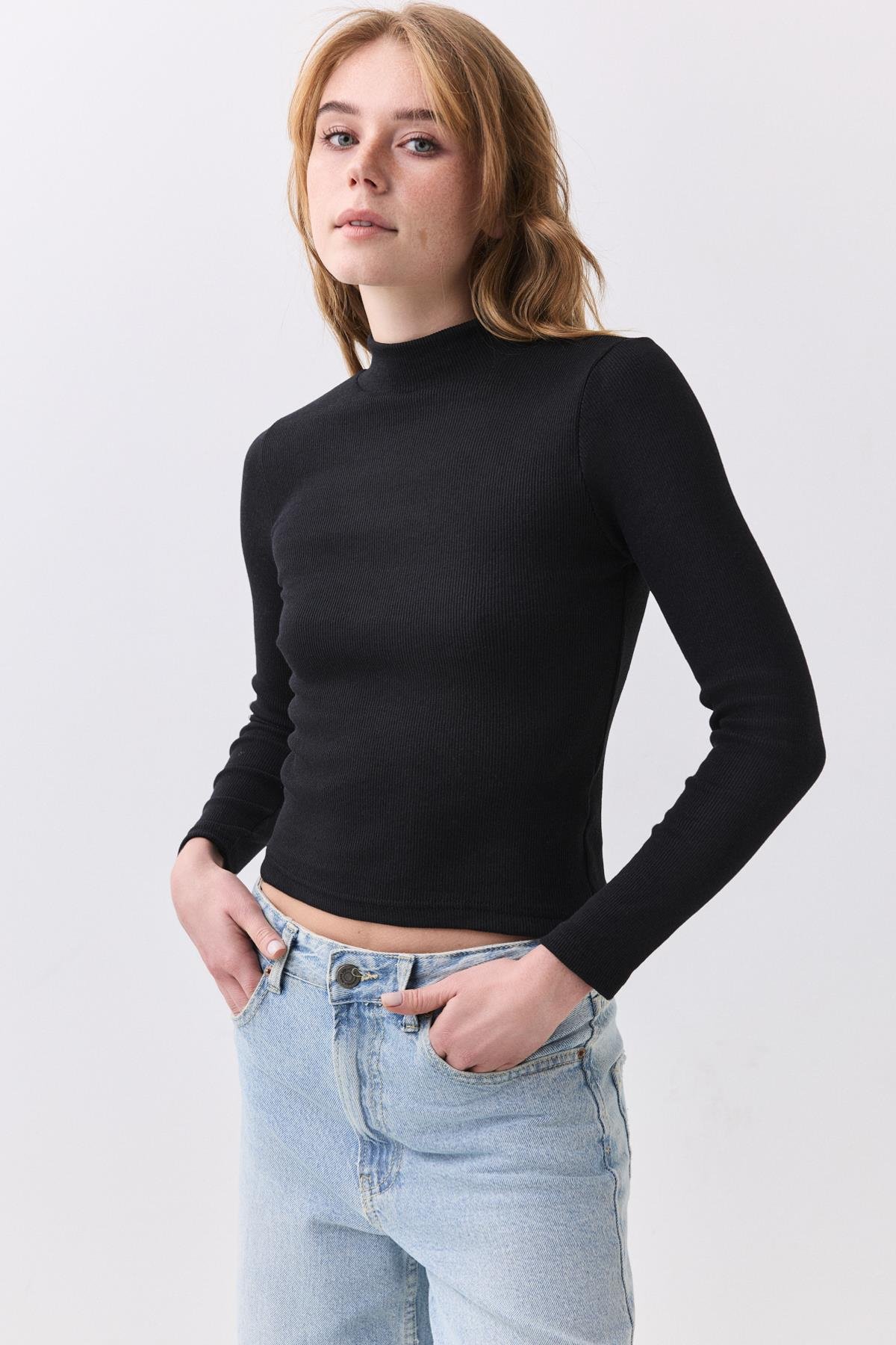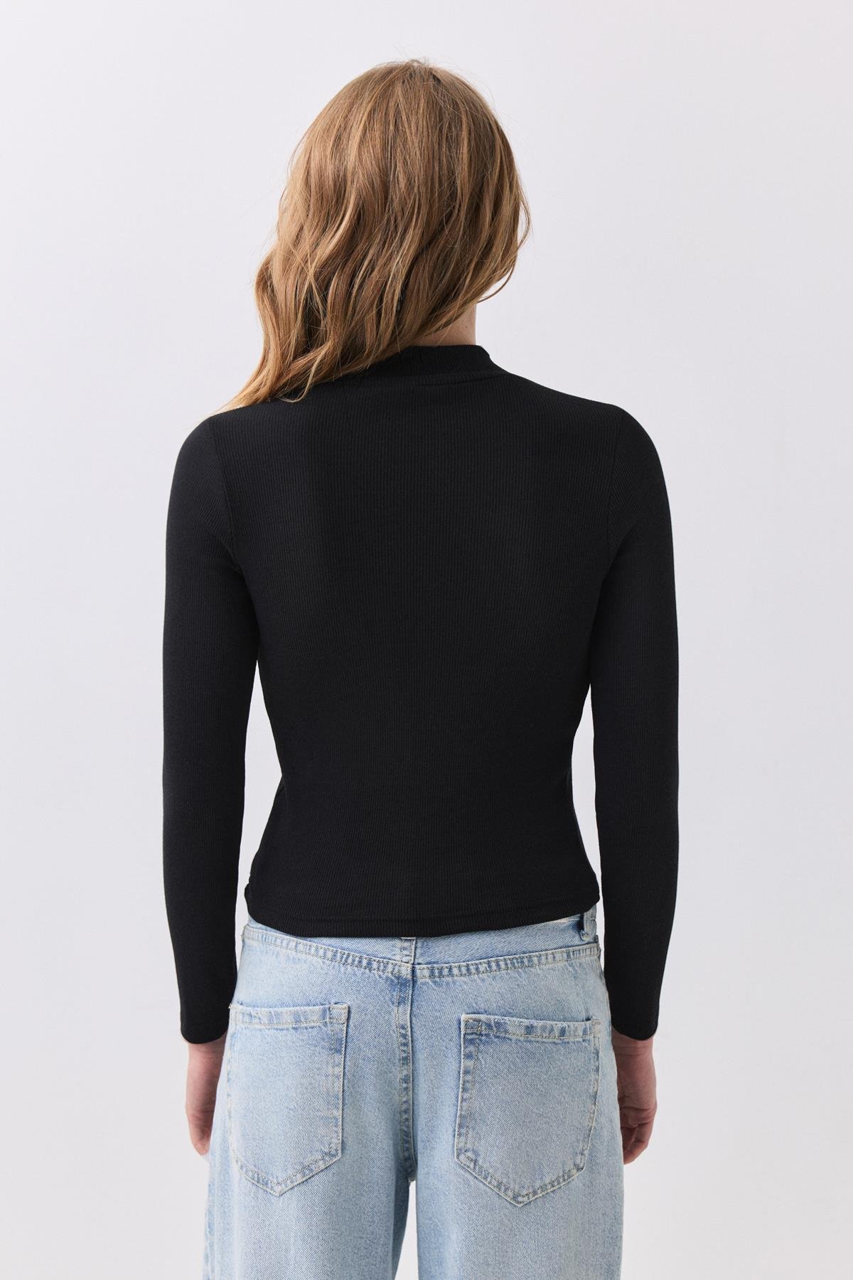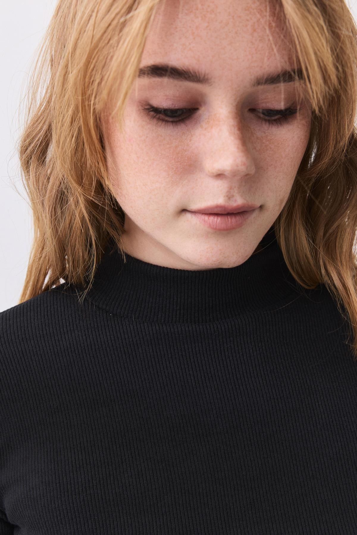 Kadın Balıkçı Yaka Uzun Kollu Bluz Siyah 9021