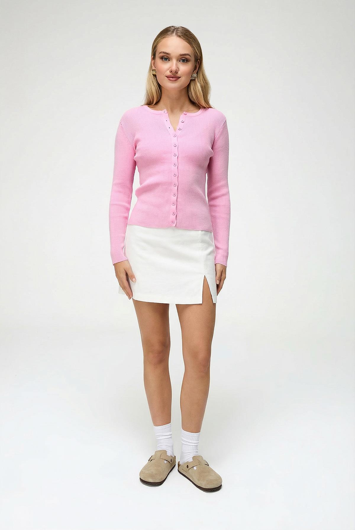 Kadın Düğmeli Fitilli Triko Hırka Pembe 6931
