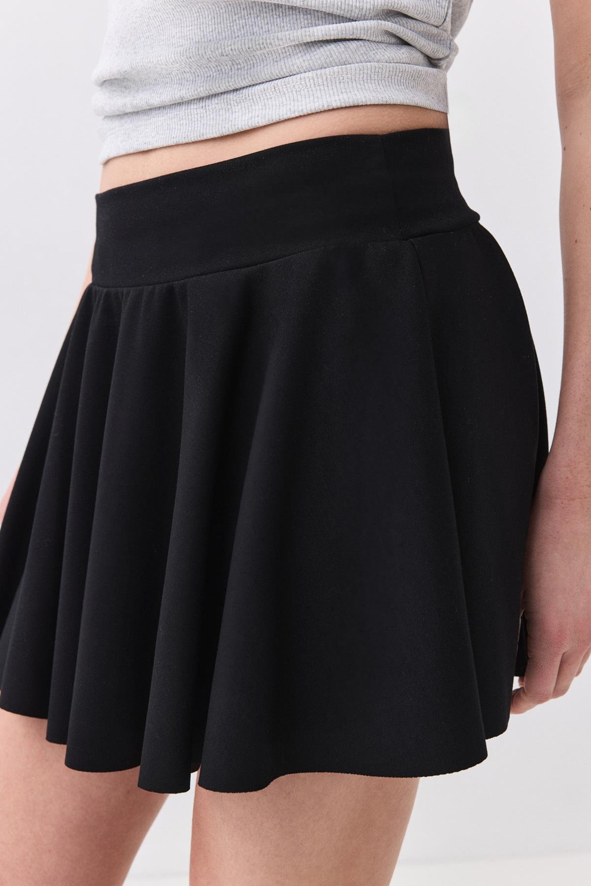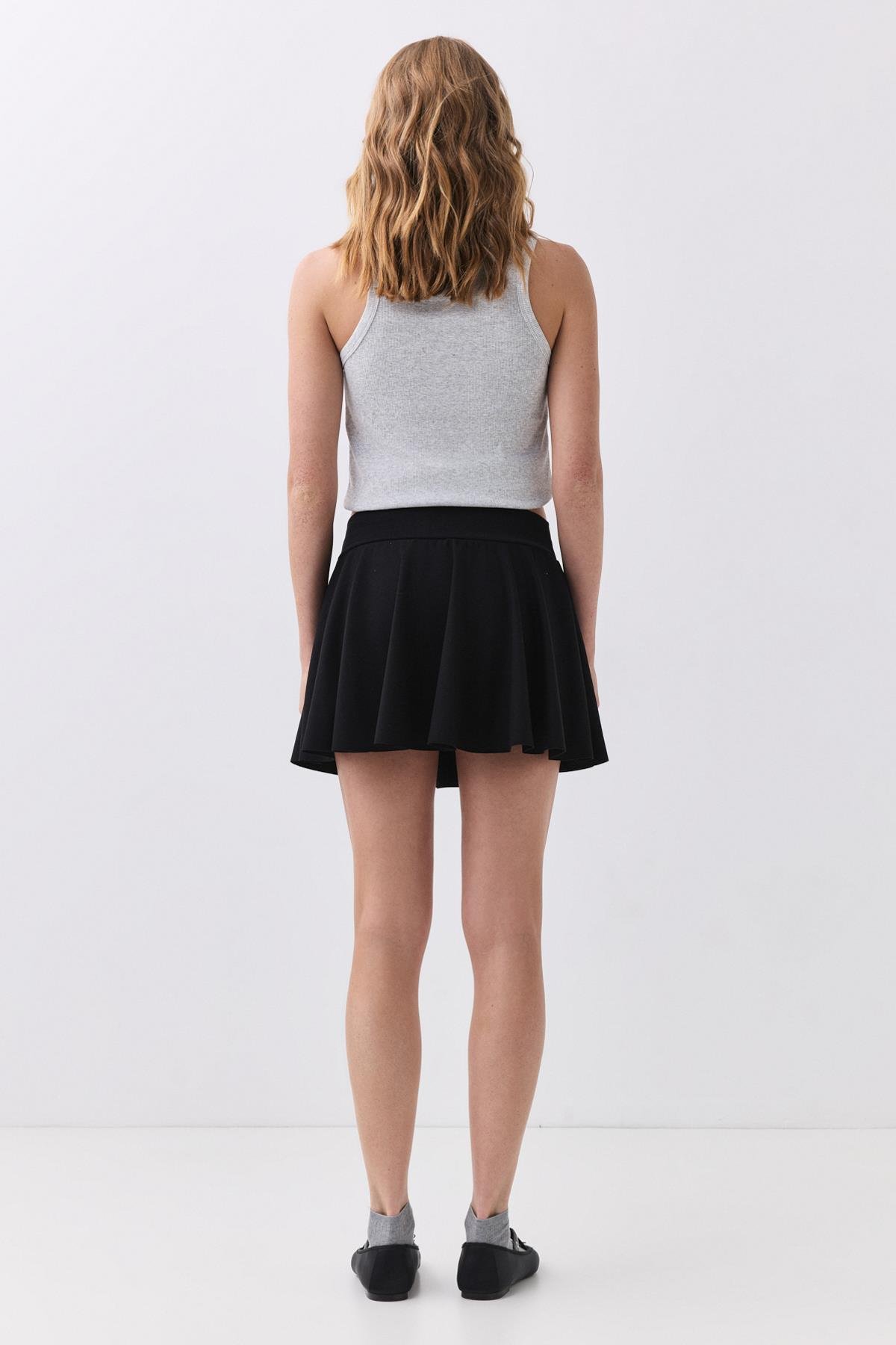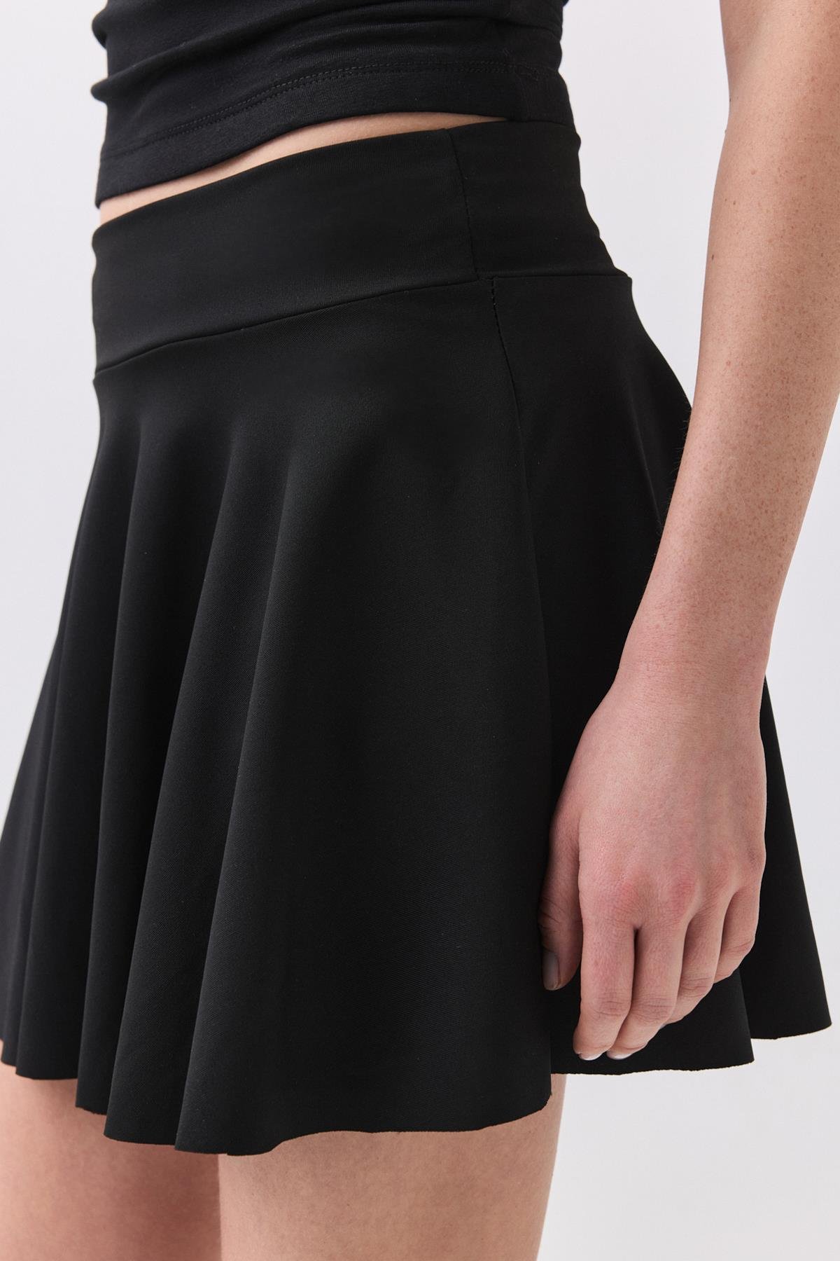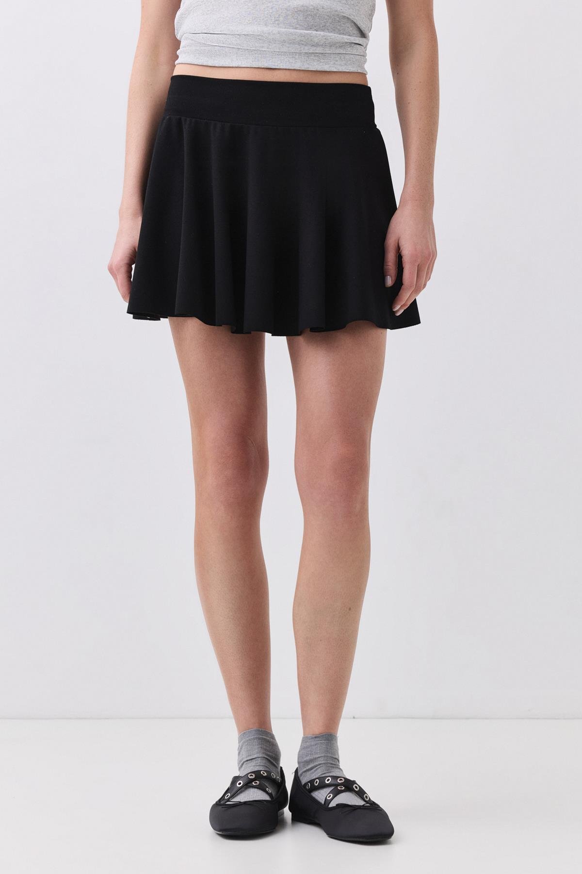 Minimalist tasarımıyla dikkat çeken Mykonos siyah etek, düz deseniyle zamansız bir şıklık sunar.