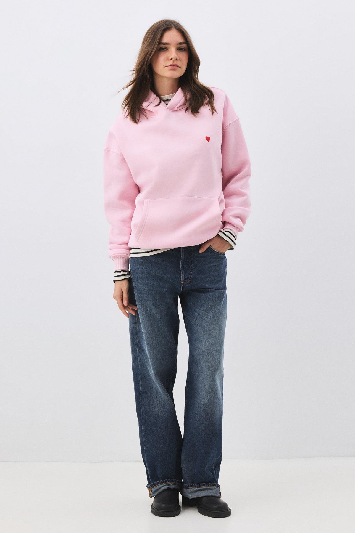 Kadın Minik Kalp Sweatshirt Pembe