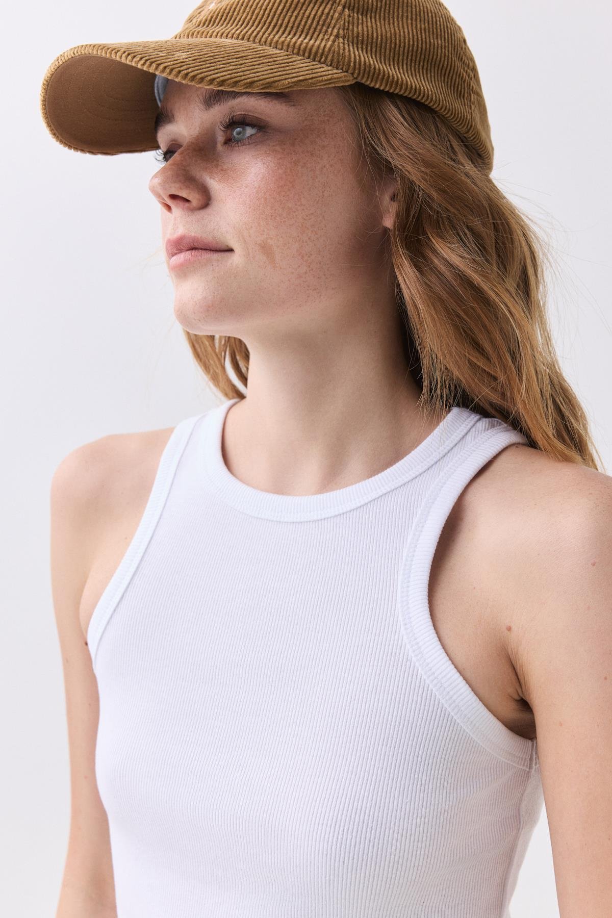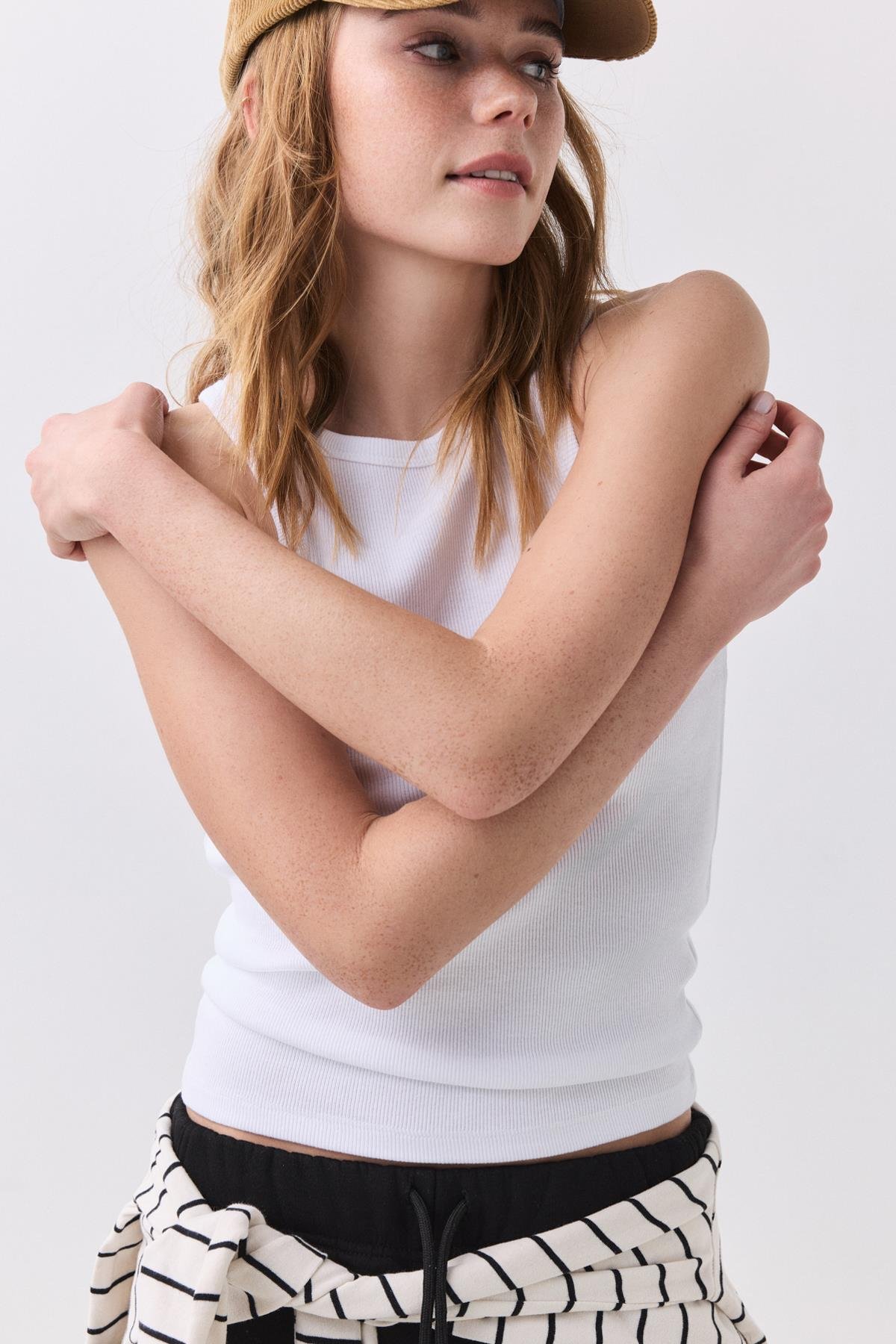 Kadın Slim Fit Dar Kalıp Sıfır Kol Bisiklet Yaka Örme Crop Atlet Beyaz  9013