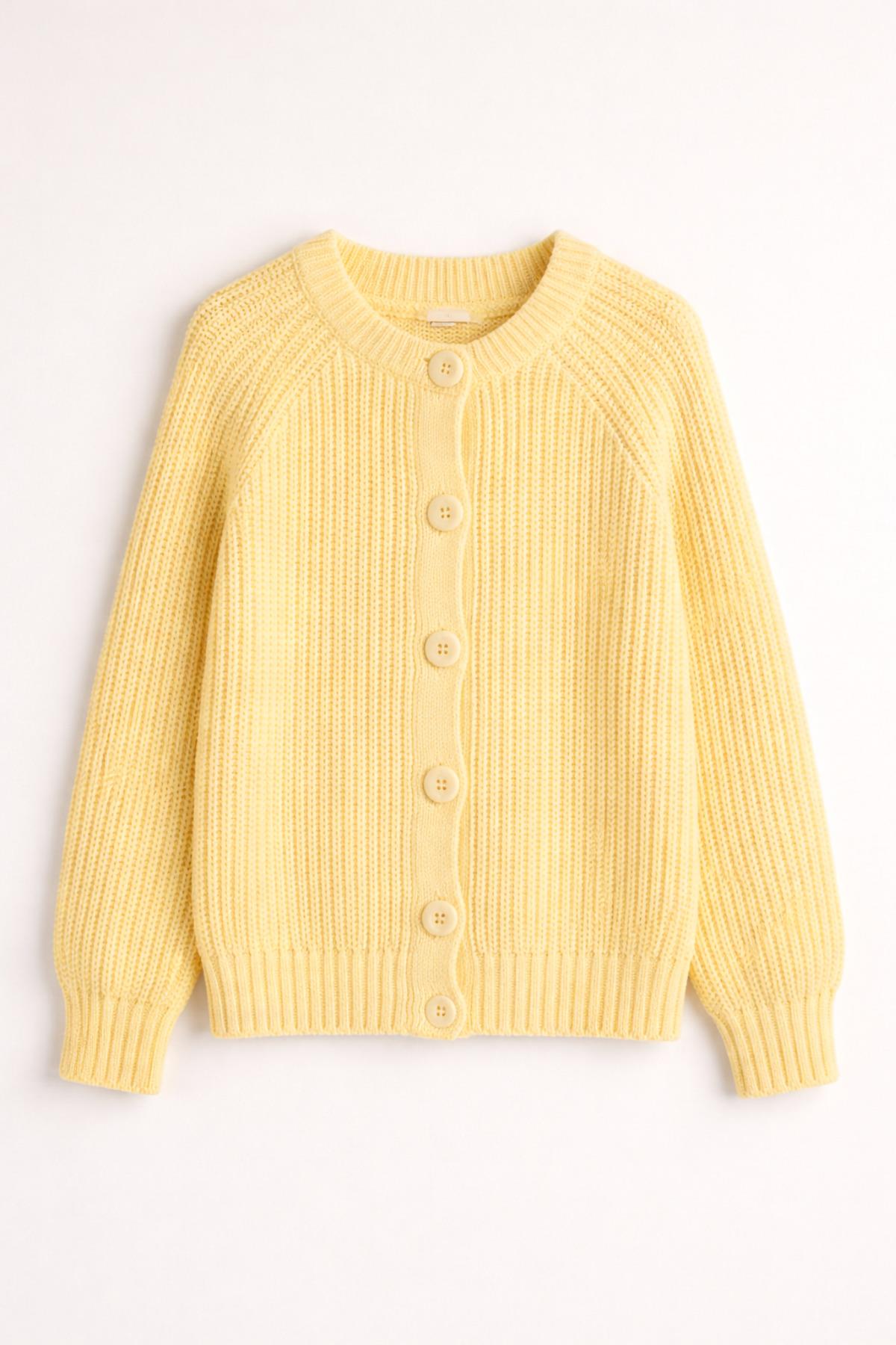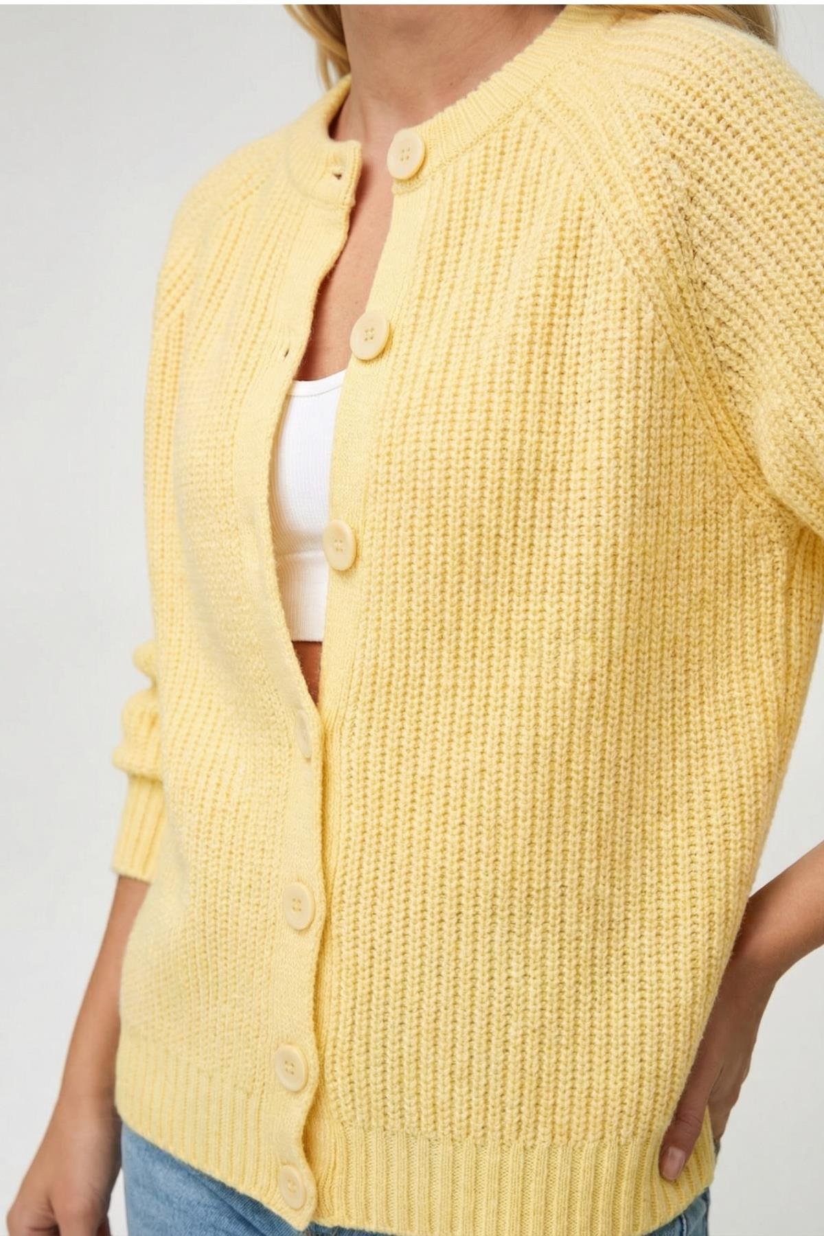 Kadın Yün Karışımlı Düğmeli Triko Hırka Sarı