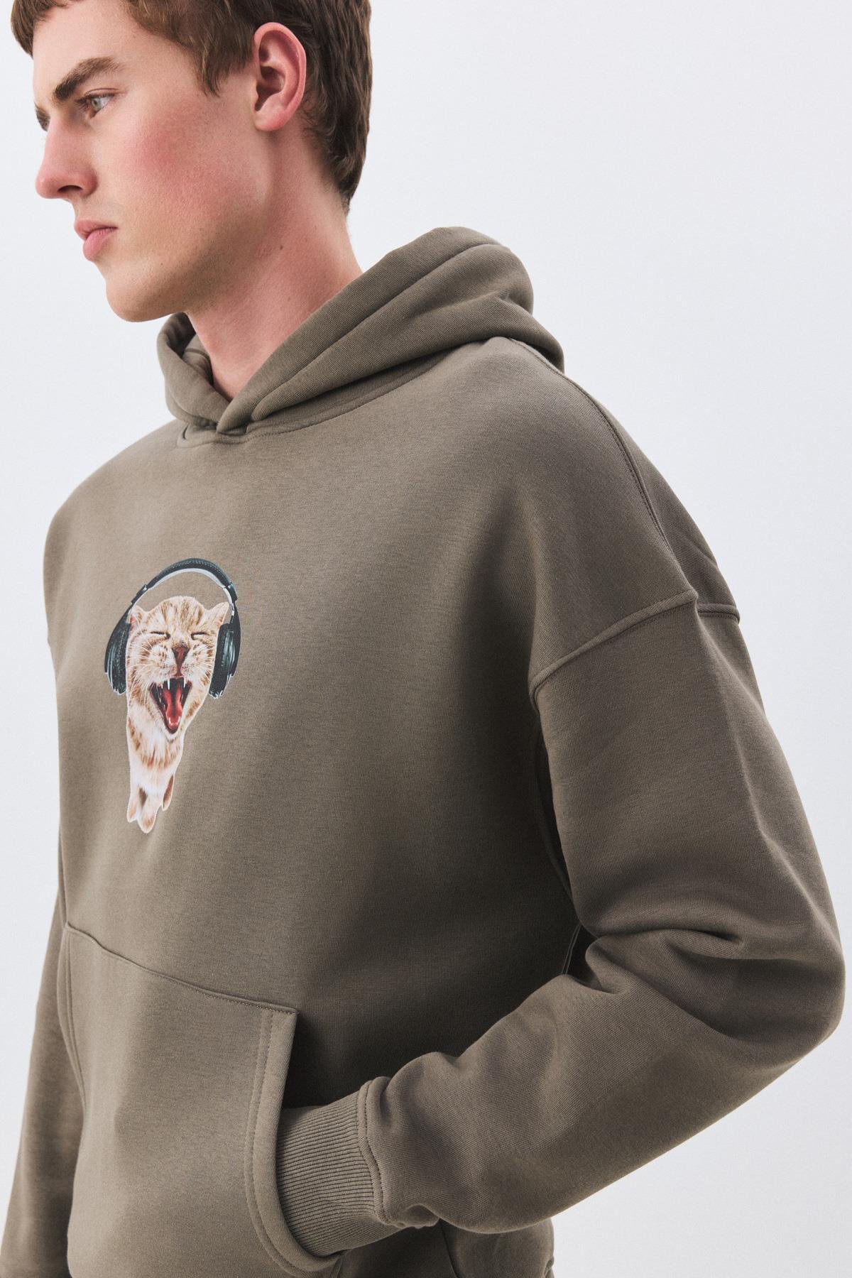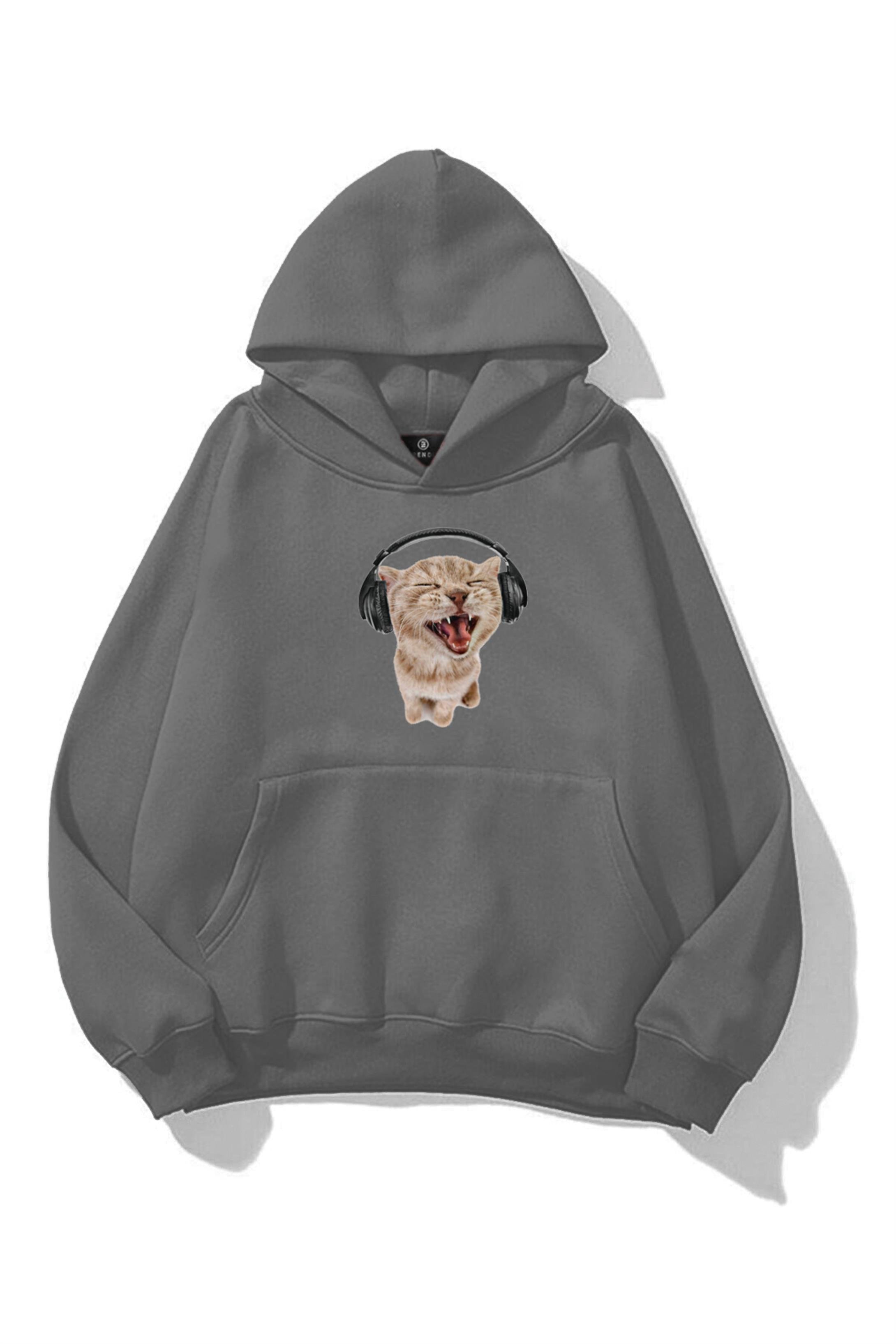 Unisex Kulaklıklı Kedi Sweatshirt Antrasit