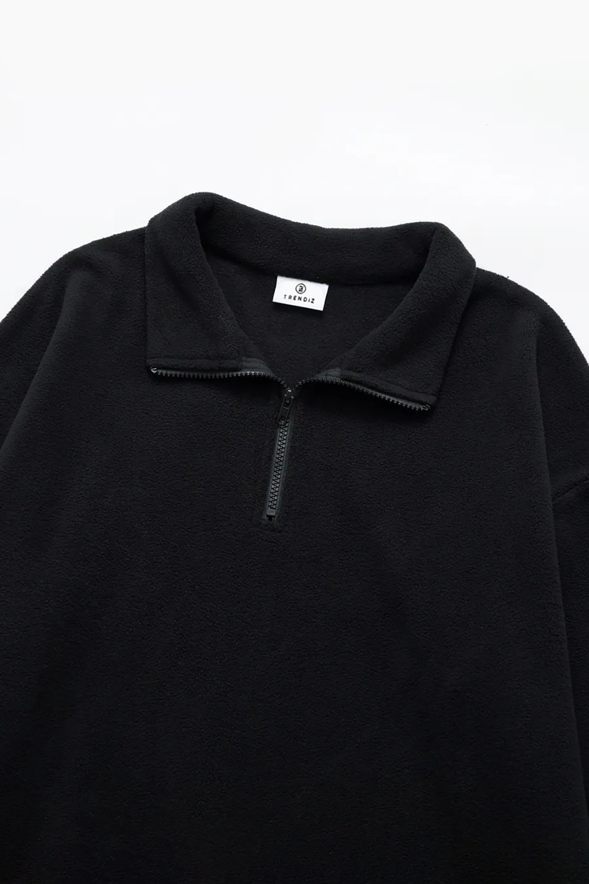 Unisex Polar Dik Yaka Sweatshirt Siyah 2051