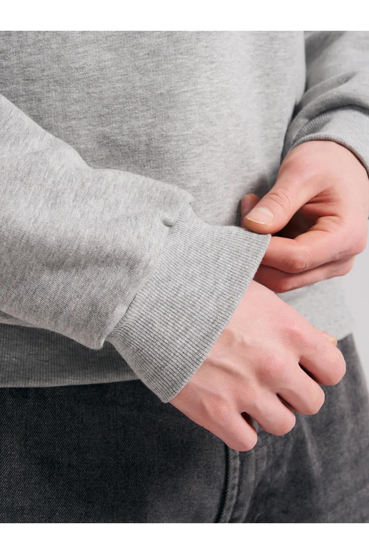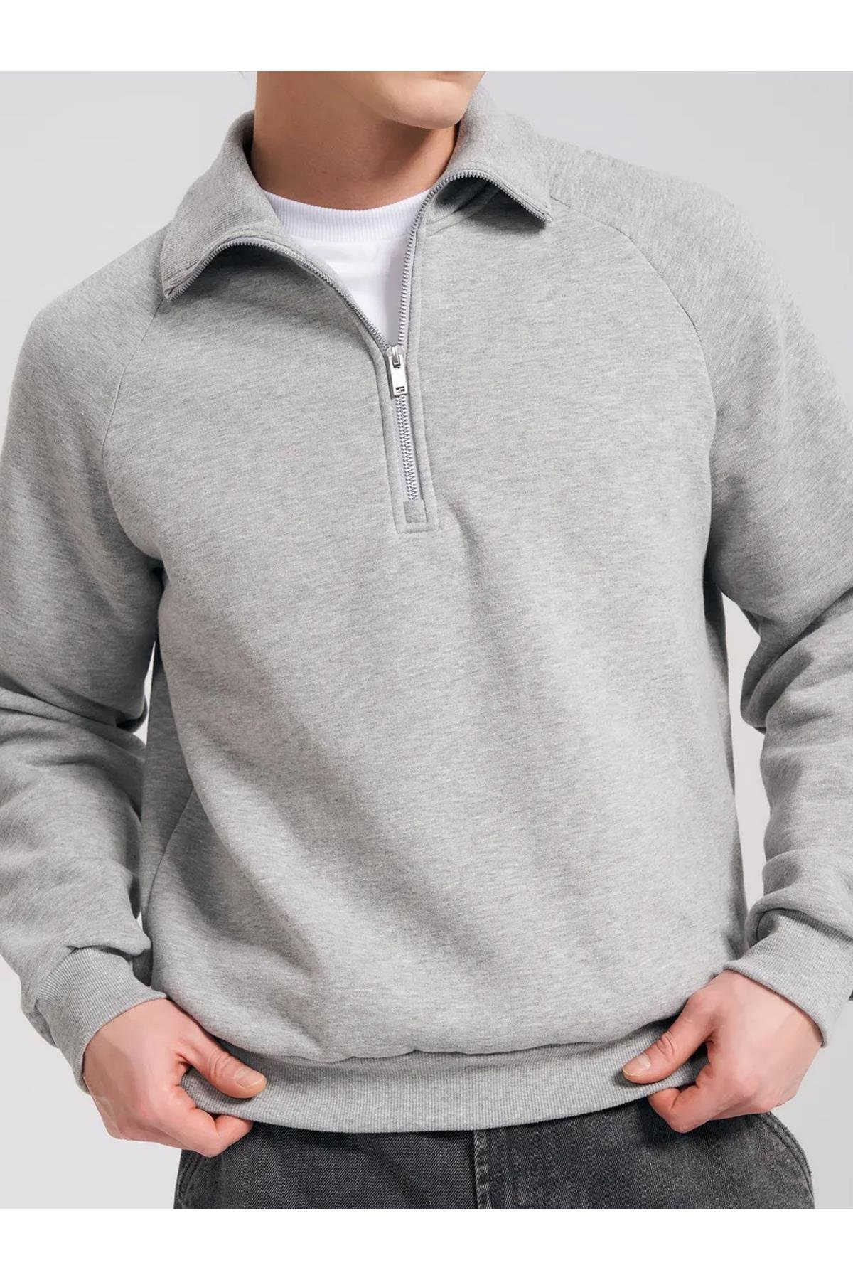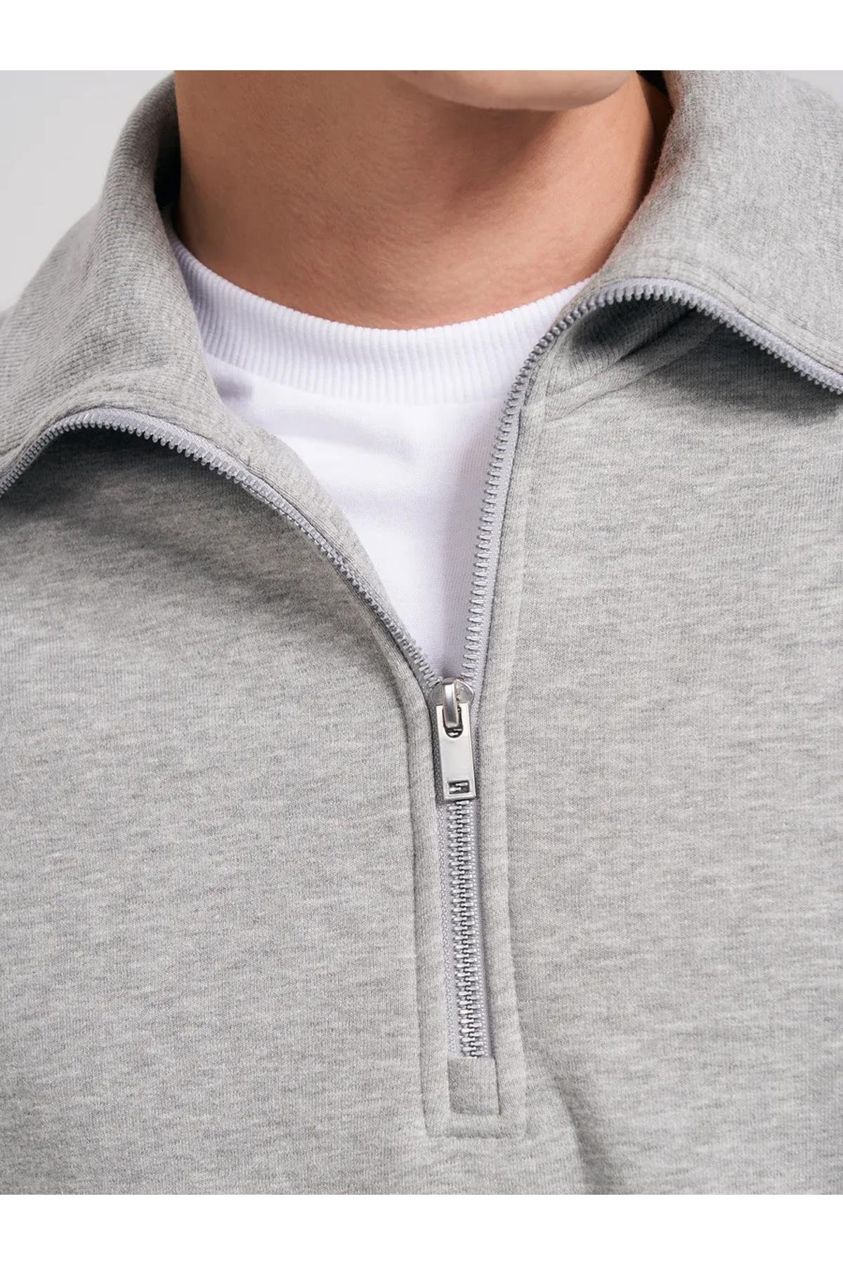 Unisex Relaxed Fit Yarım Fermuarlı Dik Yaka Sweatshirt Gri melanj 2052